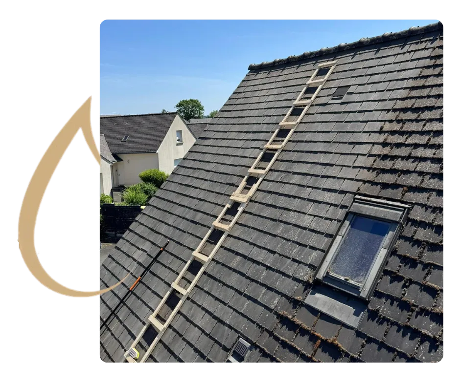 Chez Luxaclean, nous réalisons un démoussage complet et soigné, accompagné d’un traitement anti-mousse professionnel pour protéger durablement vos tuiles ou ardoises.